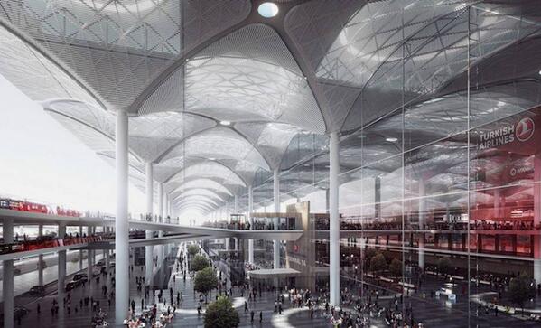 イスタンブール・グランド空港ターミナル、完成予想図公開(4/25 AFP) 1つの屋根で構成された空港ターミナルとしては世界最大となる。第1段階で完了する部分は2018年にオープン予定。afpbb.com/articles/-/301… pic.twitter.com/LDF7V98P91